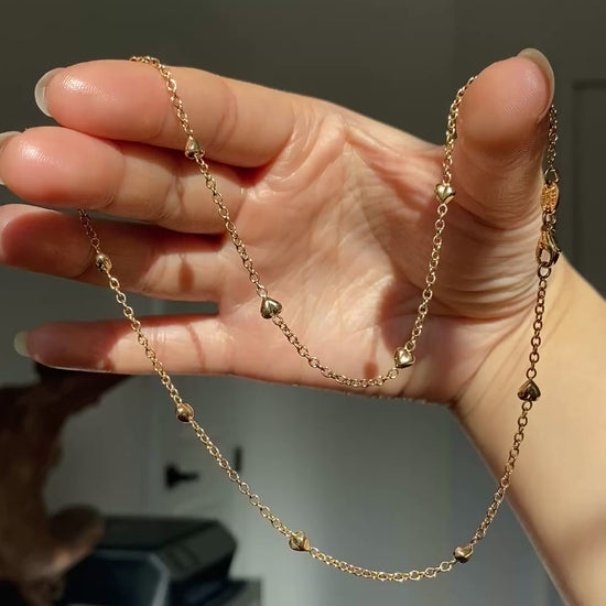 14k gold heart station link chain