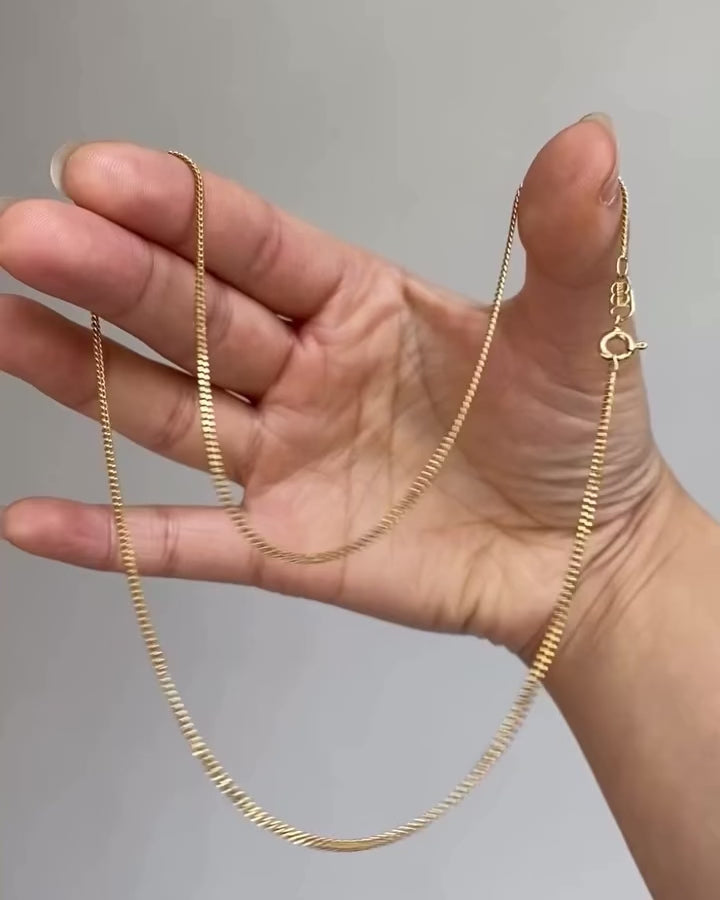 A buttery little Uno A Erre curb! Clasp is a bit dented in a few parts but fully functional, could possibly replace w another 18k spring clasp if you want. 18k, 4.20 grams, slightly over 16.5” long, 1.5mm wide.